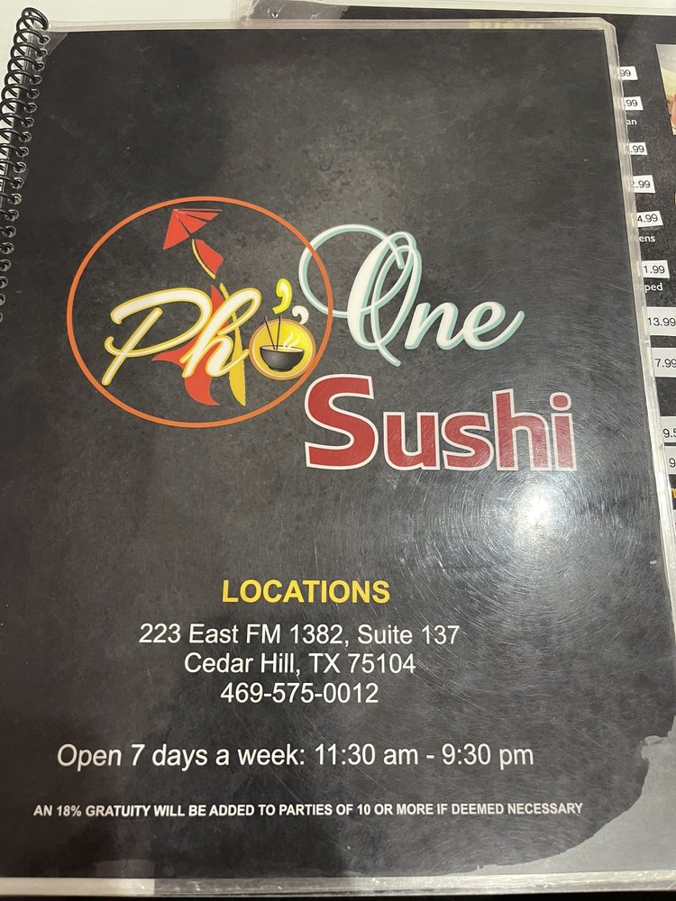 Pho One Sushi is a Vietnamese and sushi bar located in Cedar Hill, TX. Customers rave about the delicious and authentic dishes, with reviews praising the beef pho, chicken pho, sushi, and more. The restaurant is known for its fast and friendly service, with dishes served promptly and piping hot. The diverse menu offers a range of options, including seafood, soups, and bun thit nuong. The large and welcoming restaurant is perfect for gatherings, making it ideal for both intimate meals and group dining. Pho One Sushi is a hidden gem for those craving flavorful Vietnamese cuisine and fresh sushi in a cozy and inviting setting.